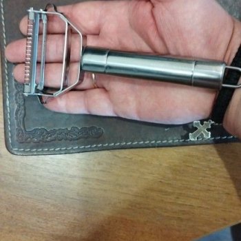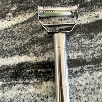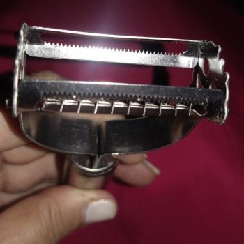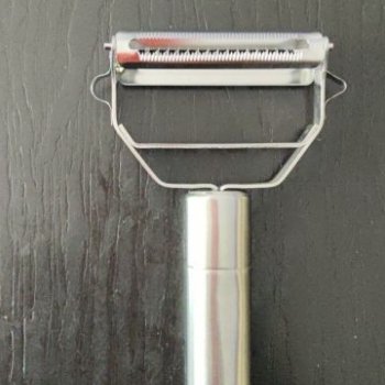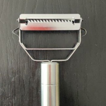 Wide vegetable peeler allowing you to make spaghetti or vegetable tagliatelles... Zucchini carrot Cucumber... Too happy with this purchase. I highly recommend it.